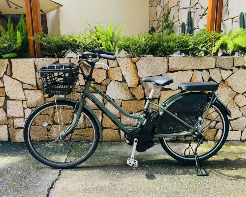 Xe đạp điện trợ lực Panasonic Hydee.B màu xanh bộ đội – phong cách cá tính, vận hành êm ái, tiết kiệm điện, pin bền, nhập khẩu nguyên bản từ Nhật Bản. Phù hợp cho đi làm, đi học, dạo phố hằng ngày.